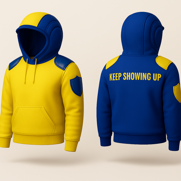 The HoodMet™ is not your ordinary hoodie-it's a b old fusion of comfort, protection, and purpose. Designed with a sleek helmet-style hood and reflectgive details, it's made for those who show up no matter the challenge. stay covered, stay confident, and Keep Showing Up. Kilani Kream/Kobee Koal (cream +black), Kiara Karamel/Kilani Kream (Caramel+cream) Royal Reign/Letahj lemon (purple and mustard) Royal Reign/Kilani Kream(Purple and cream) Jaleel Teal/Letahj Lemon(Teal+Yellow) Dante' Red+Kiara Caramel(Deep Red+caramel).Lamont Royal+Kobee Koal(black and blue).