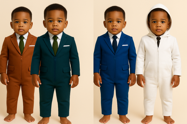 Step out in confidence and calm with the one-piece suit toddler collection. A modern twist on formalwear-this one-piece suit gives roddlers the charm of a classic suit with the comfort of a zip-up onesis. Each one-piece suit blends the charm of classic outfit with the cozy ease of zip iup design.Perfect for chirch, family gatherings, photos, or special occasions, these toddler suits deliver comfort, class, and timeless style. Every piece is crafted to make showing up feel effortless and meaningdful- because even the smallest ones deserves to look their best.